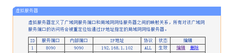 2. 设置路由器转发规则/虚拟服务器的端口映射。