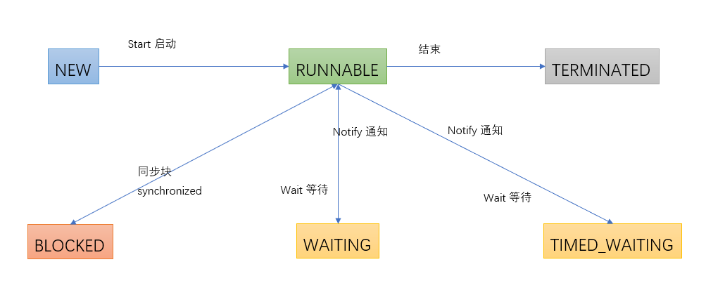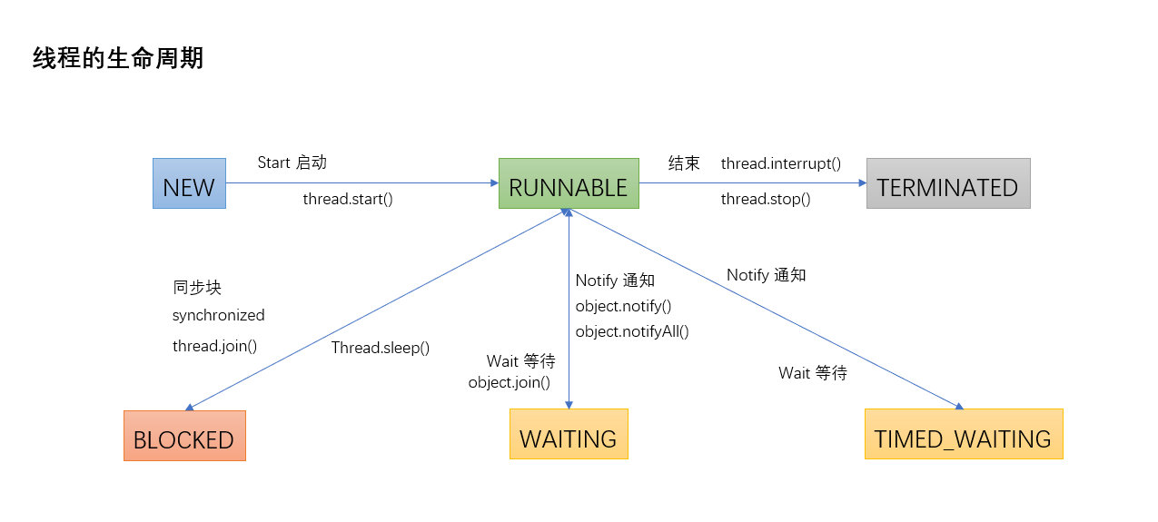 TERMINATED 线程执行完毕,进入TERMINATED状态,表示结束。