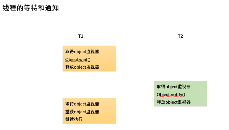 注意,object.wait()必须包含在Synchronized语句块中。无论wait()还是notify()都需要先获取目标对象的监视器。