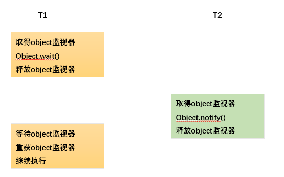 注意,object.wait()必须包含在Synchronized语句块中。无论wait()还是notify()都需要先获取目标对象的监视器。