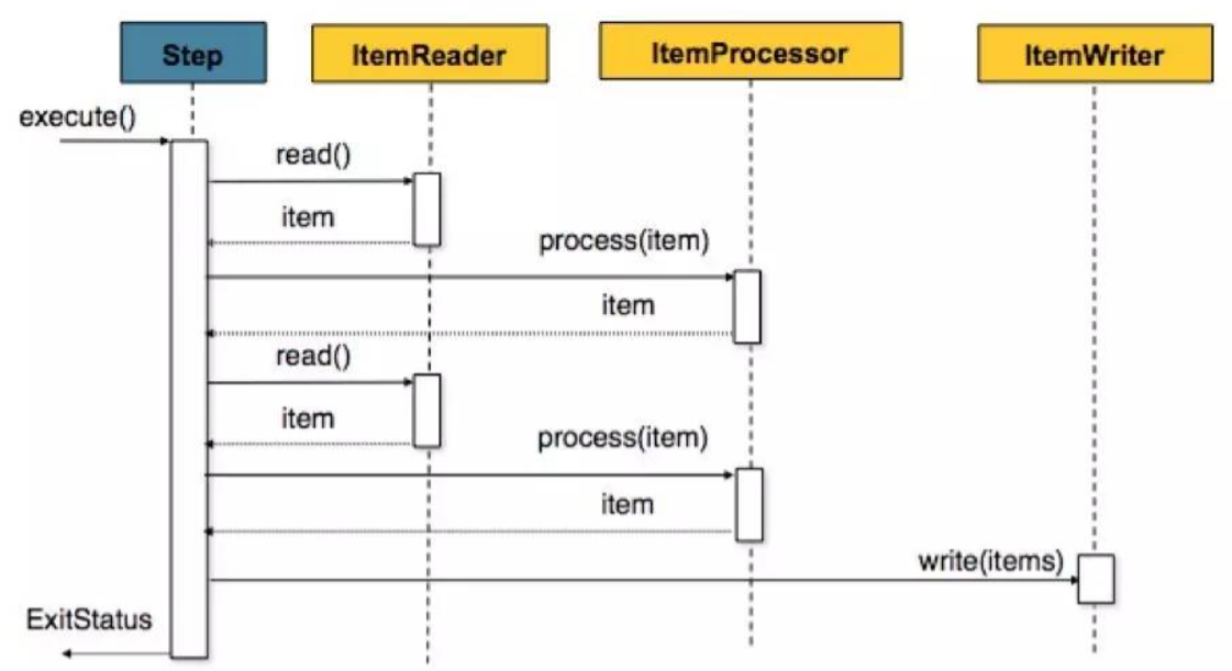 每个Step由ItemReader、ItemProcessor、ItemWriter组成,当然根据不同的业务需求,ItemProcessor可以做适当的精简。
