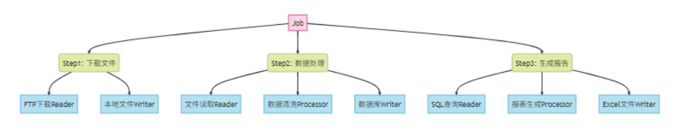 核心作用: 定义完整的批处理流水线(如月度报表生成流程)。