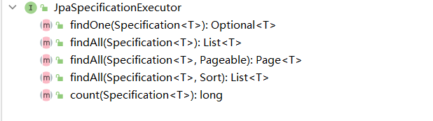 这个接口比较特殊,单独存在,没有继承以上接口。主要提供了多条件查询的支持,并且可以在查询中添加分页和排序。因为这个接口单独存在,因此需要配合以上说的接口使用。