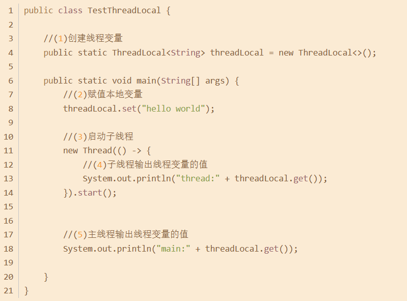 原因:在子线程里面调用get()方法时,Thread t = Thread.currentThread() 代码是获取当前线程。当前线程是子线程,而调用set()方法给threadLocal赋值的线程是main,两者是不同的线程。